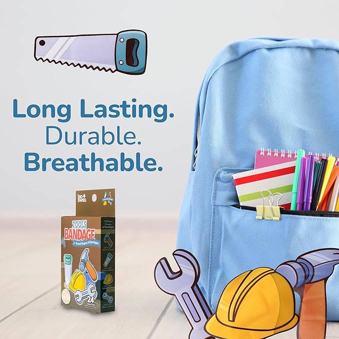 - EASY TO CARRY AND USE: These cute and colorful Tools children's bandages are easy to take with you for travel, and easy to store in a home first aid kit; these healing bandages are perfect for school, summer camp, camping trips, weekend getaways and more