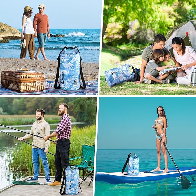 VILLEY Dry Bag Waterproof 10L Roll Top Sack Keeps Gear Dry Lightweight Dry Sack with Waterproof Phone Case for Kayaking Boating Camping Swimming and Beach Adventures Blue Camo