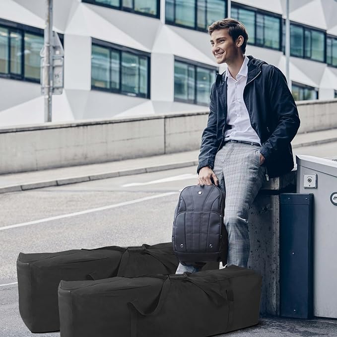 COOLBEBE 60" Sports Duffle Bag - 332L 2PCS Extra Large Travel Duffel Luggage Bag with Upgrade Zipper, Sturdy & Water Resistant Long Duffle Bag for Camping Moving (Black 60inch 2Pack)