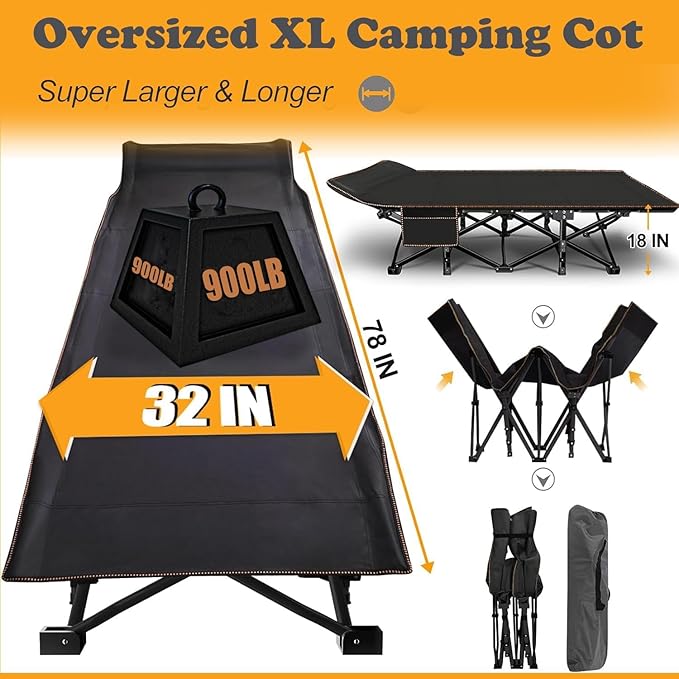 - Premium Materials: Made from double-layered 1200D polyester and a sturdy steel frame; thick oxford material prevents discomfort from frame bars; elevated headrest for added comfort; oval-square shape tube measures 1" for better support