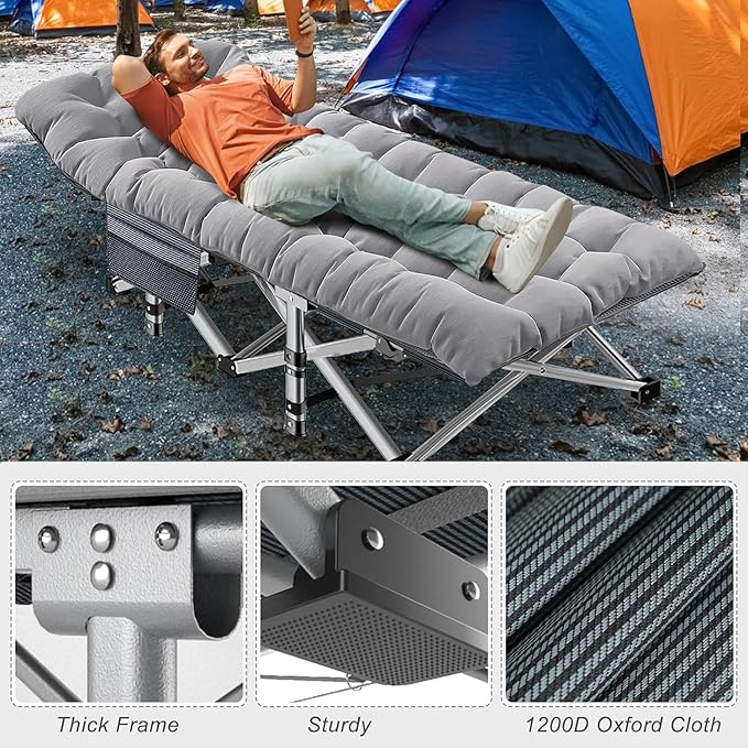 ABORON Oversized Folding Camping Cot for Adults, Double Layer 1200D, 500lb Capacity, Heavy Duty Guest Cot with Mat & Carrying Bag for Indoor & Outdoor Use