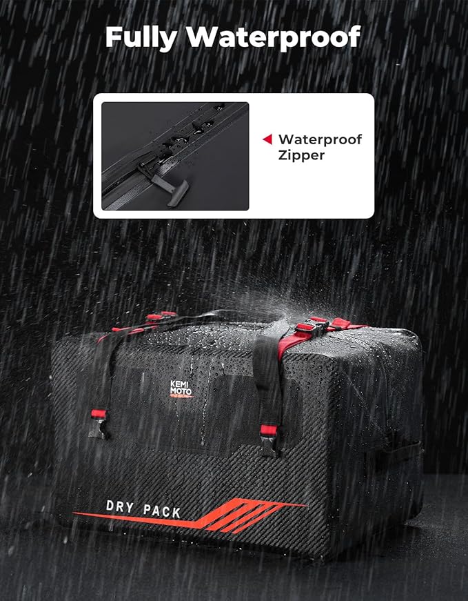 - Waterproof Dry Bag: KEMIMOTO dry bag for jet ski features premium waterproof fabric and 6-level sealed zippers to keep contents completely dry. Duffel bag is built to withstand saltwater, impacts, and rough seas while protecting your phone, wallet, and gear. Waterproof bag is ideal for high-speed water adventures.