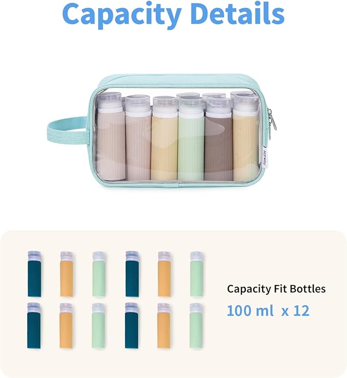 Narwey Clear Travel Toiletry Bags for Traveling Toiletries Men Women, Clear Makeup Bag Cosmetic Bag with Zipper, Make Up Pouch Organizer Bags with Handle, Skincare Bag (Mint Green)