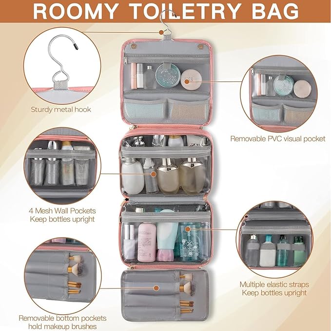 - EASY TO CARRY & TRAVEL KIT: Features a convenient carry handle on the top and a swivel non-slip metal hook for versatile hanging options. Ideal for overnight stays, long journeys, business trips, gym showers, and outdoor activities. Certainly an excellent choice for Christmas, birthdays, or as a thoughtful present for yourself, your family, and your friends