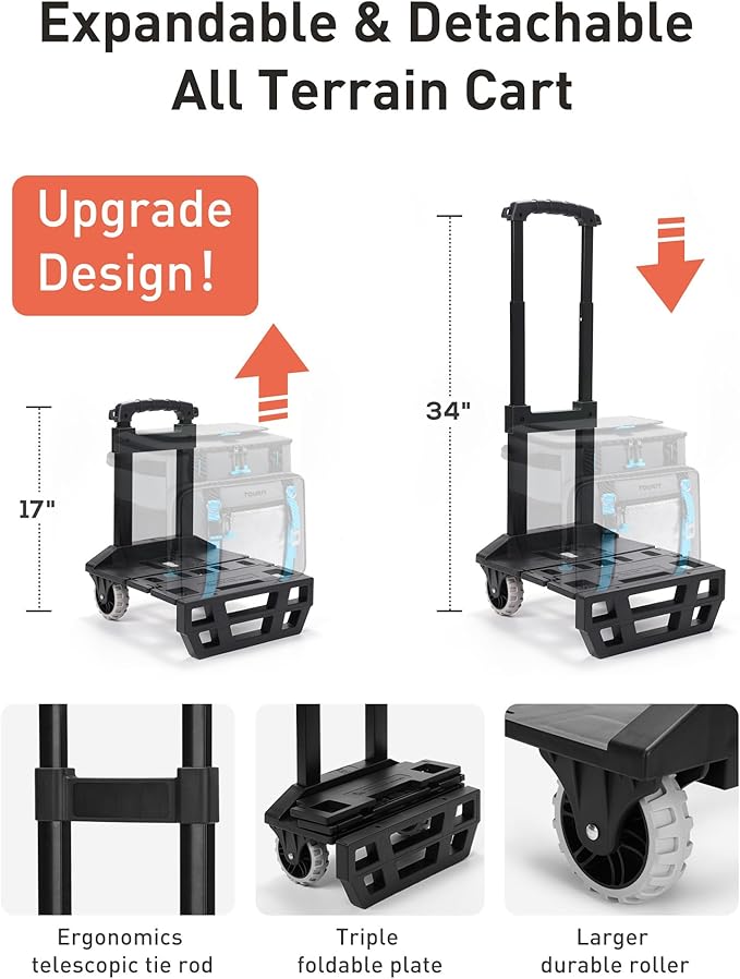 - 【3-Section Retractable Handle & All-Terrain Wheels】Featuring an ergonomic 100cm telescopic handle (adjustable in 3 sections) and oversized rugged tires, this rolling cooler glides effortlessly over sand, gravel, or pavement. The foldable base collapses into a compact size for easy storage.