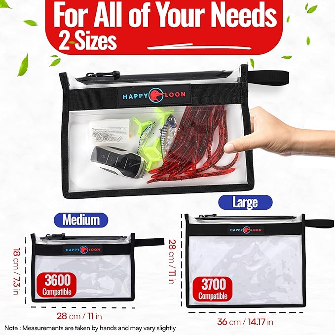 - Versatile Two-bag System For All Your Needs - Kit includes both medium and large waterproof tackle storage bags. Use the small tackle bag for phone, wallet, keys, and fishing license holder; use the large as a fishing storage bag for tackle boxes, fishing lures, and additional gear. Perfect as a waterproof pouch for swimming, beach, or hiking.