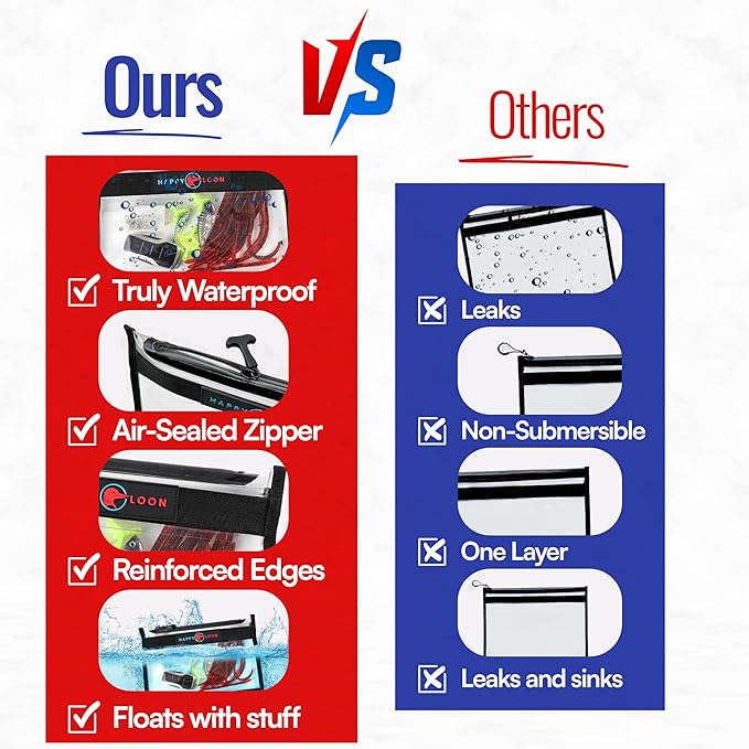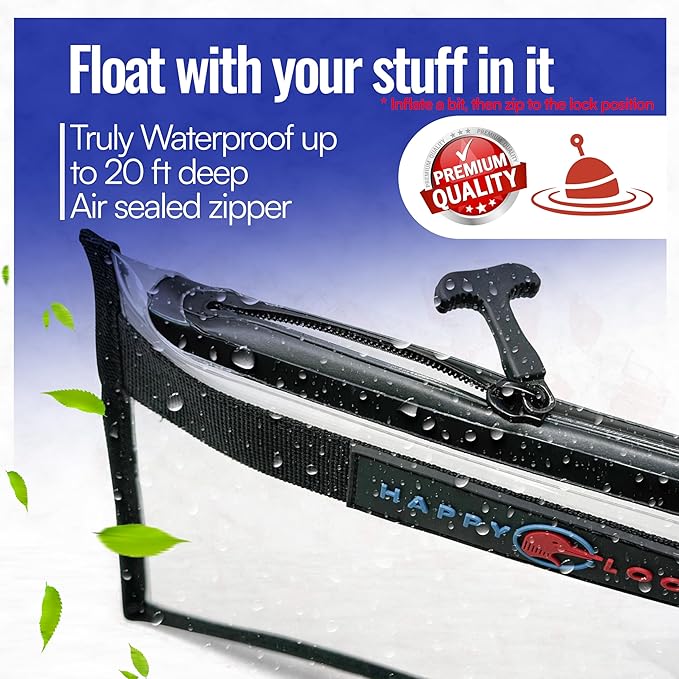 - Innovative Buoyancy Design - Never Lose Your Gear - Unlike ordinary waterproof bags that sink when filled, our tackle bags FLOAT even when loaded with fishing gear, tackle box organizers, and lures. Make sure there is some AIR in it and the zipper is in the LOCK position. Perfect boat accessories and kayak accessories that keep your equipment safe and retrievable when dropped overboard.