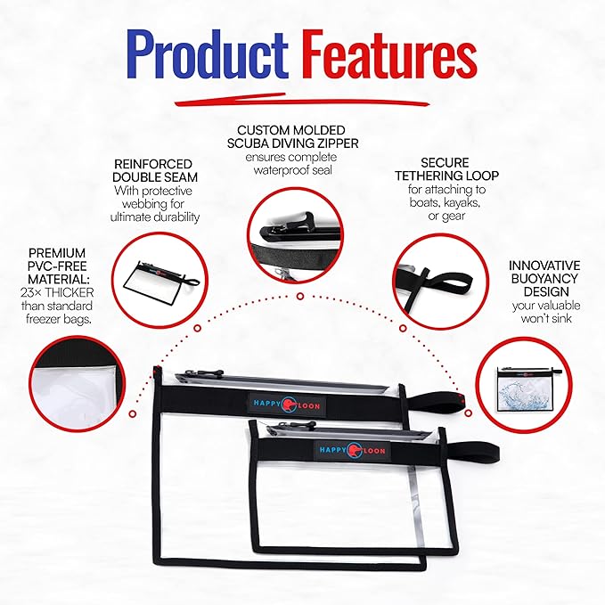 - Remium Marine-grade Pvc-free Materials - Constructed with love to nature, premium materials that withstand harsh marine environments. These waterproof pouches feature a professional scuba-grade zipper system that maintains a watertight seal in all conditions. Superior to ordinary waterproof phone pouches or zipper tool pouches.