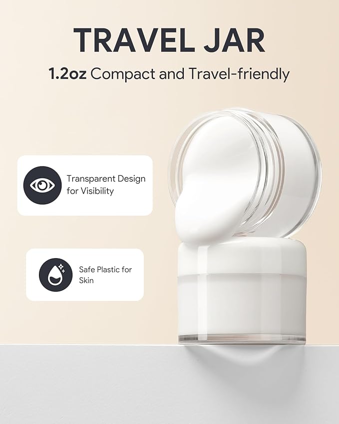 - All-in-One Travel Storage Solution: Our set comes with travel-size products, including 1 toiletry bag, 4 travel bottles(2.2oz) and 2 travel jars(1.2oz), making it a one-stop-shop for your travels