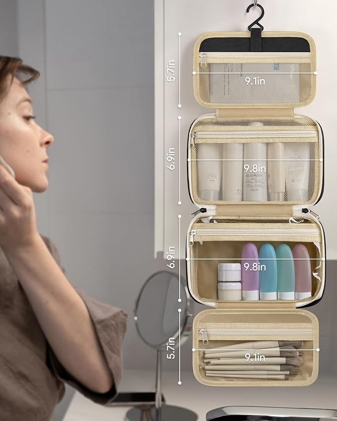 - Small Size, Large Capacity: This space-saving hanging toiletry bag holds all your travel essentials-makeup, travel-size shampoo, conditioner, and skin care products