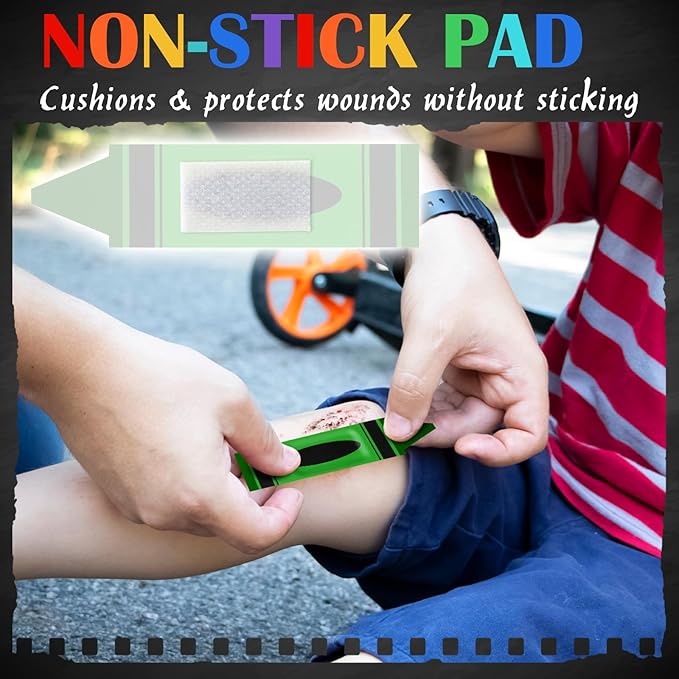 - Vibrant and Fun Crayon Bandages: enhance nice using process with a touch of fun and color; Our crayon bandages come in classic crayon image and vibrant colors, playfully conveying messages like [CRAYON BANDAGES]; These back to school bandages make wound care less daunting, promoting a positive using experience