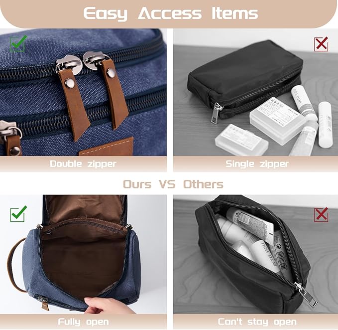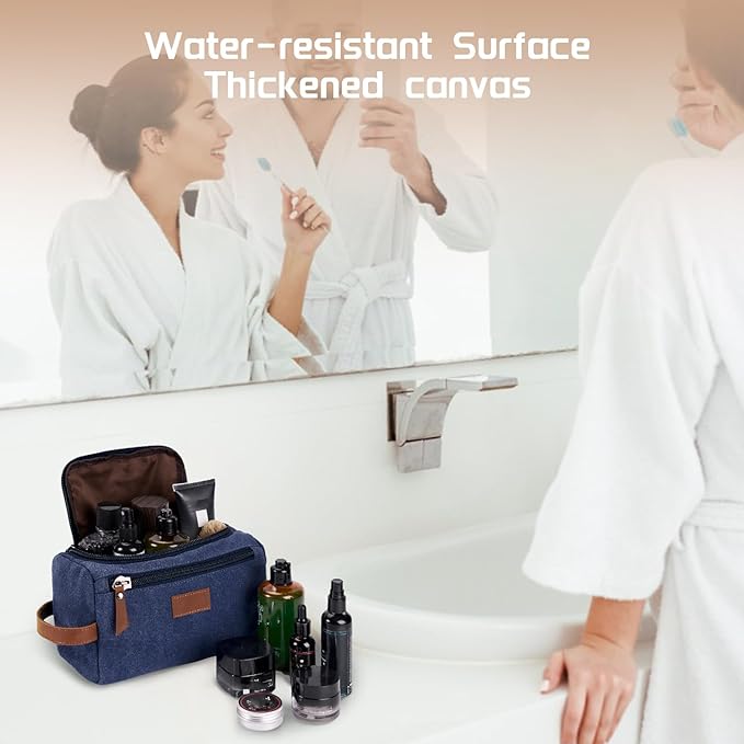 Men's Canvas Toiletry Bag, Large Capacity Men's Travel Portable Toiletry Bag, Organizer Dopp Kit Leather Accessory, Water-resistant Shaving Pouch, Birthday/Anniversary/Groomsmen Gifts for Him- Blue