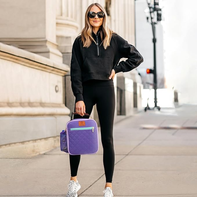Lunch Bag for Women Men Girls Teens Insulated Leakproof LunchBox for Adult Reusable Lunch Box with Bottle Holder for Work Office School Travel Picnic-Purple/White