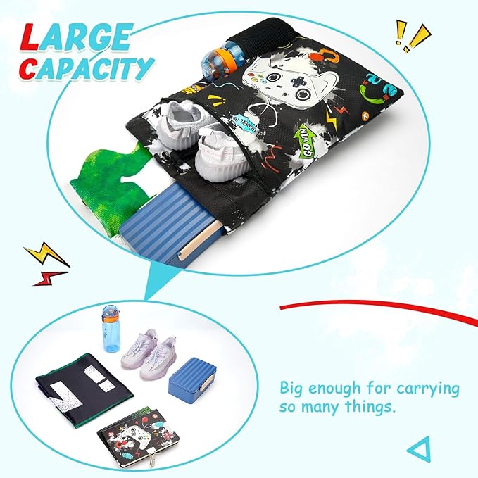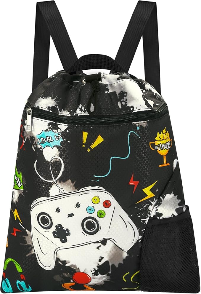 - ATTRACTIVE LOOK: Designed and manufactured by ourselves using an advanced printing process. Add a splash of fun to your family's beach day with our unique game drawstring backpack for kids. Whether used as a kids swim bag or a boys beach bag, its adorable design is sure to capture kid's hearts.