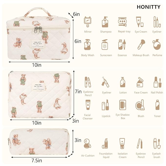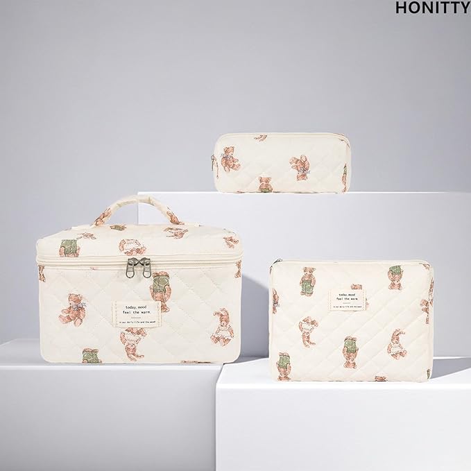 Makeup Bag,Quilted Cosmetic Bag,Large Floral Make Up Bag for Women,Cotton Makeup Bag Set,Flower Travel Toiletry Bag