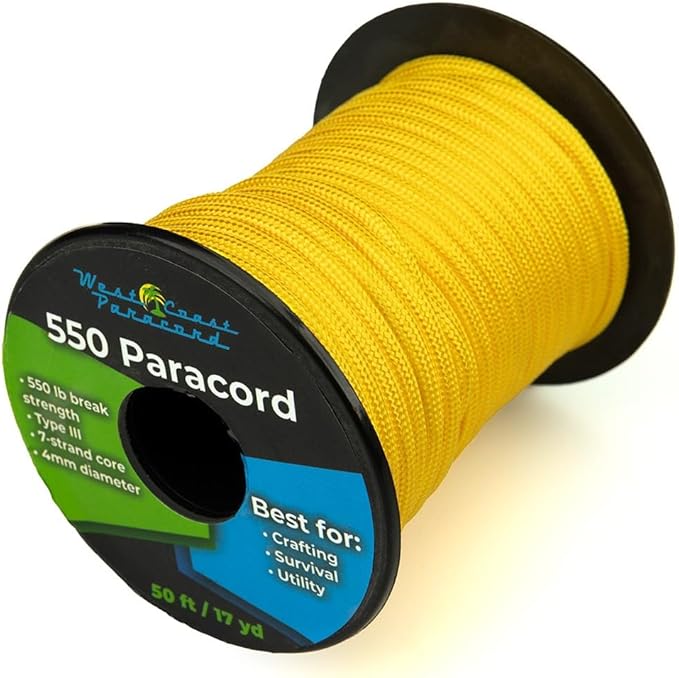 West Coast Paracord 100, 50 Feet 550 Lb. Paracord Parachute Rope Great for Outdoors Camping, Storage Kayak Utility Spool Many Colors