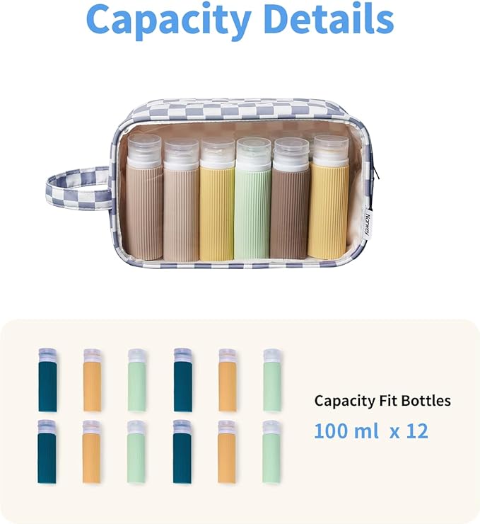 Narwey Checkered Clear Makeup Bag Cosmetic Bag with Zipper for Travel, Clear Toiletry Bags for Traveling Toiletries Wome Men, Make Up Pouch with Handle, Skincare Bag (Grayish Blue Checkerboard)