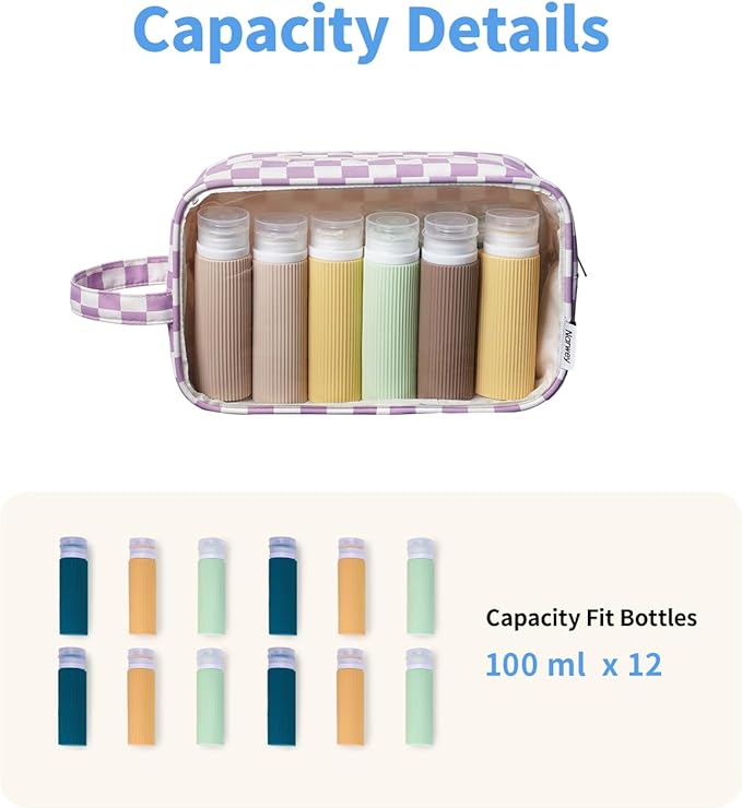 Narwey Checkered Clear Makeup Bag Cosmetic Bag with Zipper for Travel, Clear Toiletry Bags for Traveling Toiletries Women Men, Make Up Pouch with Handle, Skincare Bag (Purple Checkerboard)