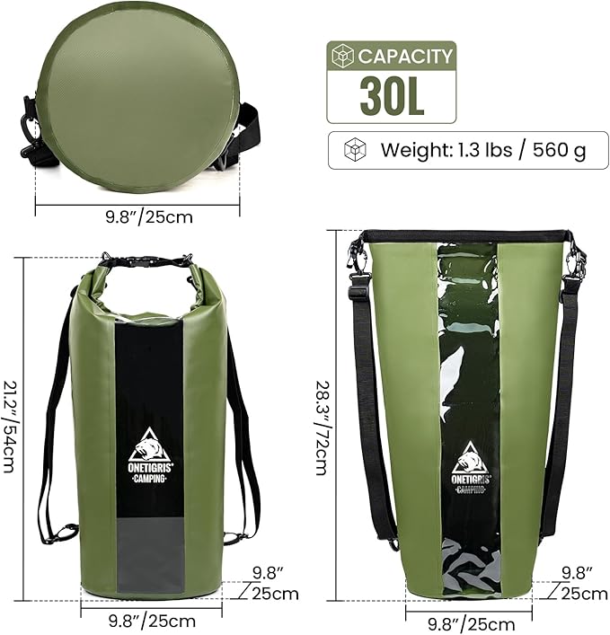 - 30L Large Capacity: OneTigris dry bag backpack offers ample storage space to fit clothes, towels, electronics, food, and other personal items that need to stay dry. The capacity is perfect for various outdoor activities. The dry bag can be folded into a compact size for easy carrying and storage, taking up minimal space