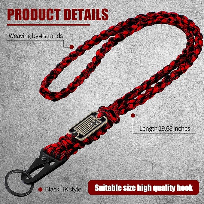 - Quality polyester material: the paracord lanyard adopts quality polyester material, sturdy and reliable, comfort and soft to wear, not easy to wear or break, will serve you for a long time
