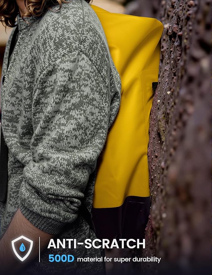 - Superior Waterproofing - Stay prepared for any adventure with the Lamicall 10L Waterproof Dry Bag, crafted from heavy-duty 500D PVC fabric for superior protection against rain, snow, sand, and dust. Whether you're kayaking, hiking, or hitting the beach, this 10L yellow dry bag ensures your phone, camera, clothes, snacks, and documents stay completely dry and secure. Note: While highly water-resistant, this dry bag is not designed for full submersion.