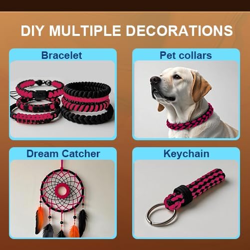 - Wide applications: This mini nylon cord is suitable for various arts and crafts projects, such as making bracelets, keychains, lanyards, dream catchers, jewelry, and home decorations. It can also be used to make pet collars, ID badge lanyards, belts, and so on. Whether you're a beginner or a seasoned DIYer, this cord unlocks endless creative possibilities.
