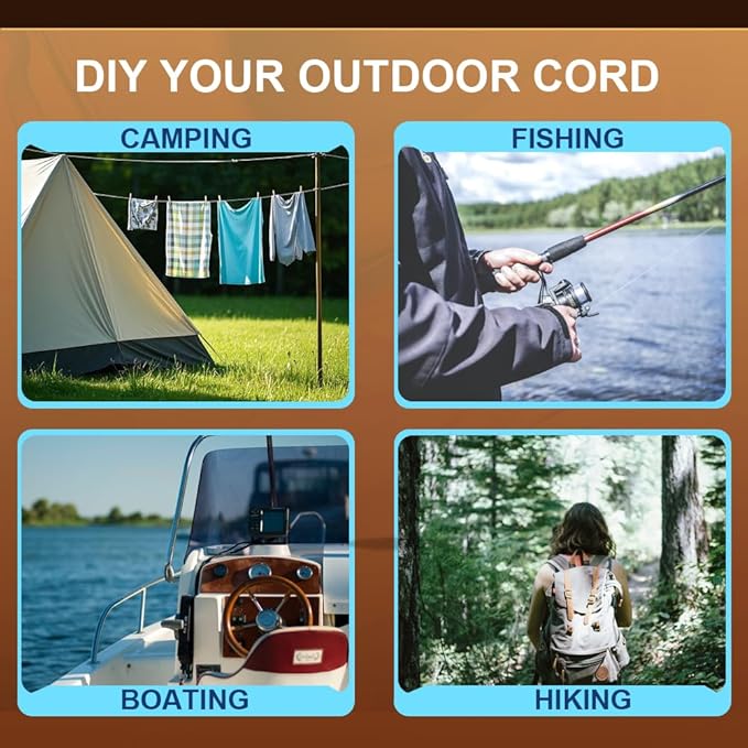 - DIY your outdoor paracord: This micro cord paracord is widely used in outdoor activities such as camping, hiking, fishing, and kayaking.In addition,it can also be used to fix equipment like bicycles and kayaks. Whether these items are being transported on a vehicle or stored in a garage, this cord ensures the safety of the equipment.