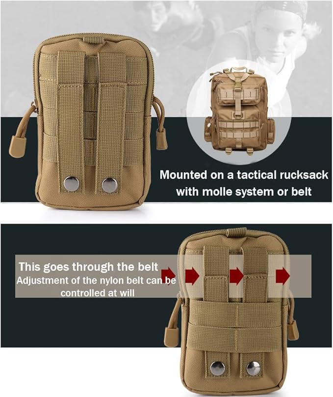 - DETAILED DESIGN: The pouch has Molle system retention strap, suitable for tactical belt, tactical backpack, etc. Lock on the front prevents your cell phone from falling out. Two sturdy zippers prevent internal items from slipping out. Comes with two button straps that can be adjusted to fit belts of different widths.
