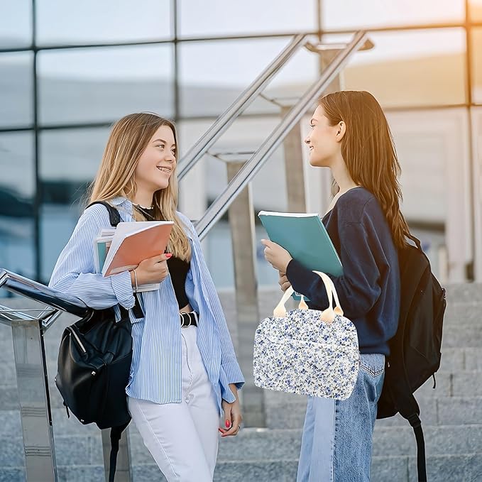 - DURABLE AND WATERPROOF: The women lunch bag is made of high-quality cotton and thick aluminum foil, and the encrypted pearl cotton can better maintain the temperature of food. Easy to clean, keep cool and fresh, and long-lasting thermal insulation. The lunch tote handles feature reinforced metal zippers and a two-way zipper for easy access.