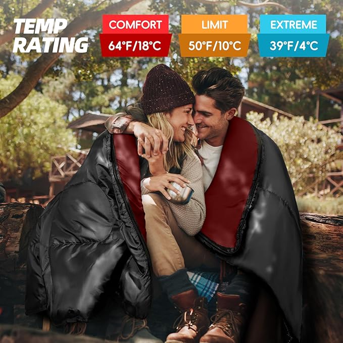 - IDEAL FOR COLD WEATHER: Our double sleeping bags are designed to give you a good night's sleep. Temperature rated from 39°F to 64°F (optimal comfort temperature is 64°F). Perfect for warm and cool weather in 4 seasons and cozy in any position. Really versatile warm sleeping bag for the outdoors and indoors.