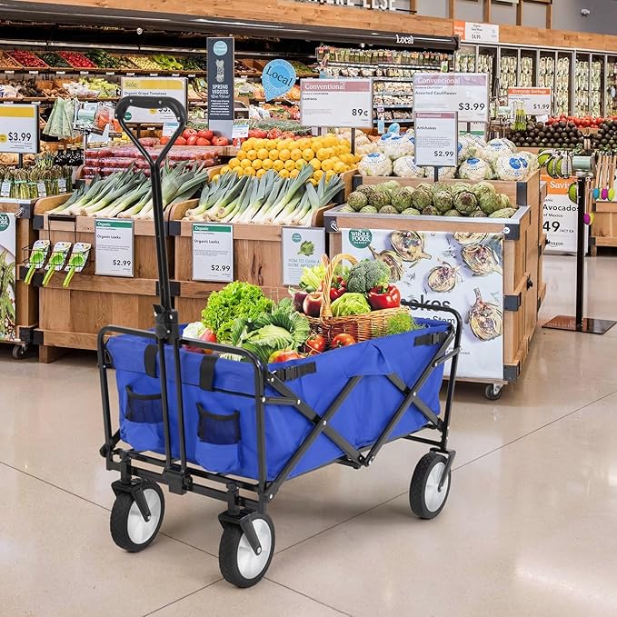 - Large Capacity & Widely Usage: This Collapsible Wagon Cart with unfold full size: 38.8" (L) x 21.7" (W) x 41.9" (H) really has deeper and larger storage space. It can be widely used for Camping, Fishing, Beaches, Parks, Barbecues, shopping, Taking the Parcels etc.