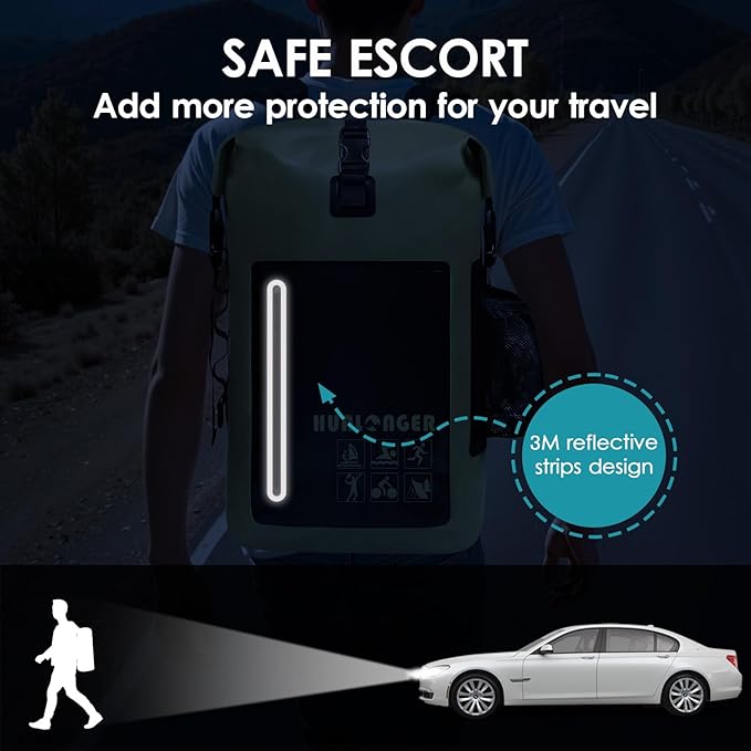 • Dry Bag Backpack: Features a front zippered pocket with reflective strips for easy access to small items and enhanced safety in low light. Includes side hooks and a water bottle pocket. The smooth surface is easy to clean—just rinse and wipe after use. Perfect for hiking, camping, or beach trips