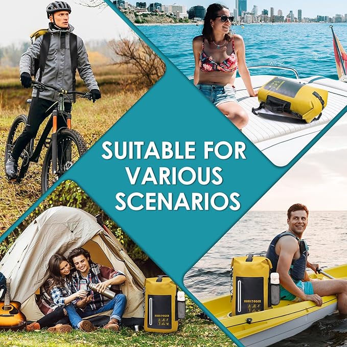 • 100% Waterproof Protection & Floating Design: Crafted with high-strength PVC and triple-layer roll-top closure, hualonger dry bag ensures complete waterproof protection for all weather conditions. Its air-tight seal keeps gear dry even submerged in water. Plus, the floating design prevents loss during water activities like kayaking or rafting
