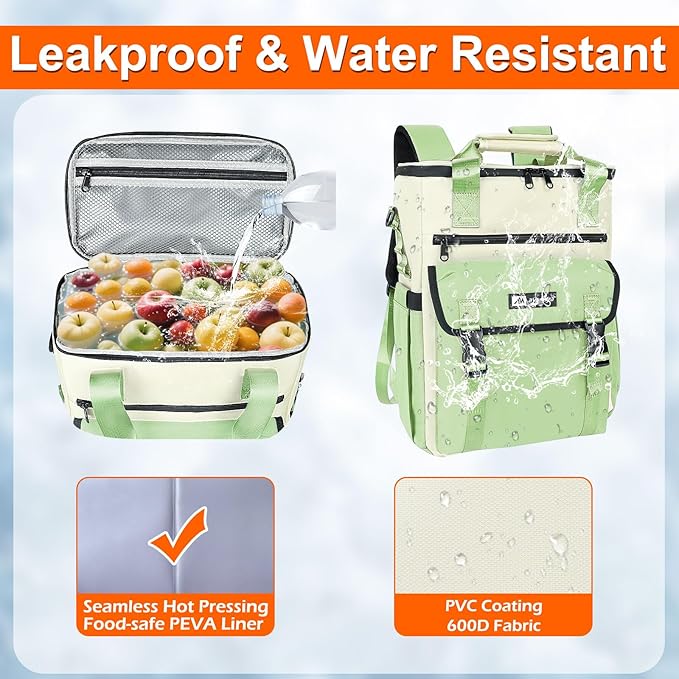 - Leakproof & Waterproof: The PEVA lining adopts seamless welding technology, effectively preventing water leakage. The exterior of the backpack cooler is made of 600D oxford fabric with a PVC waterproof coating and a waterproof zipper, which further enhances the waterproof effect.