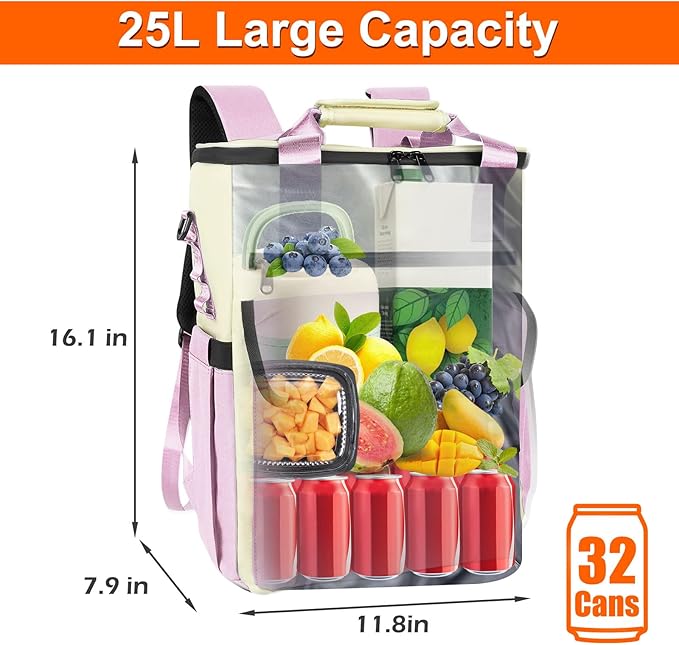 - Perfect Capacity: With a capacity of 25L, it can hold 36 cans of cola. The cooler backpack measures 16.1" * 11.8" * 7.9" , and weighs only 2.25 lbs. It has a large enough capacity without being too bulky or heavy to carry, making it convenient for extended use.