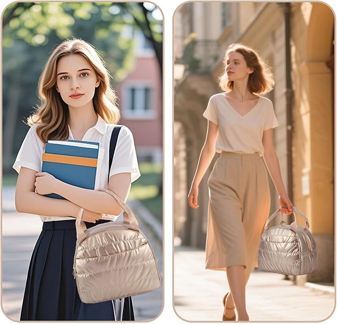 - Fashionable and Practical Design:This trendy lunch box for women features a quilted puffer exterior design, this lunch bag is not only comfortable to carry, but the fabric is also waterproof.Simple and elegant design makes it an ideal choice for various environments, including offices, outdoors, or beaches.