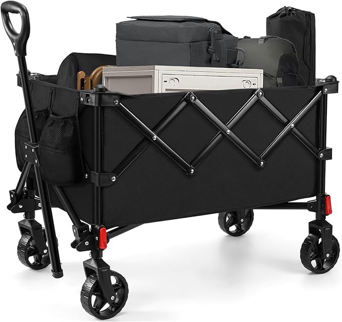 - All-Purpose Cart, whether it's gardening and yard work, grocery shopping, community service, collecting firewood, family camping trips, home improvement, this folding wagon cart with wheels is your fatigue-free companion. Say goodbye to the strain of carrying or lifting and fully enjoy the outdoor fun