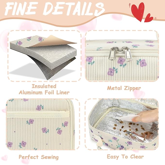 - Wide open zipper for the kids lunch bag make it easier for the little one to manage mealtime on their own; Made of durable waterproof corduroy fabric, quality zippers and thick aluminum inner (BPA free) to ensure your little one's lunch does not get crushed; Easy-wipe interior make cleanup a breeze.