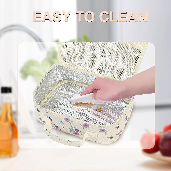 - Well designed insulated lunch box for carrying food, snacks, lunch to school, office, work, and on the go. This durable reusable lunch box cooler is uniquely built to meet all your daily lunch, meal prep, or snacking need. Kepping your food fresh at optimal temperature so you can always recharge with the warm tasty food and cool drinks.