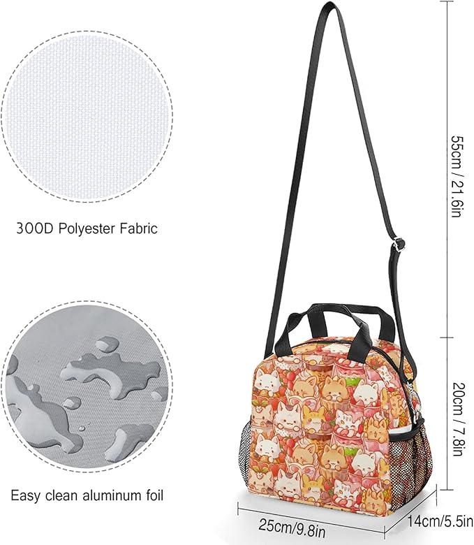 Lunch box Kids,Insulated Cat Lunch Bag Cute Small Pink Lunch Totebag Reusable Leakproof Corgi Lunch Bag With Shoulder Strap for Girls Boys Women School Work Picnic (red cat)