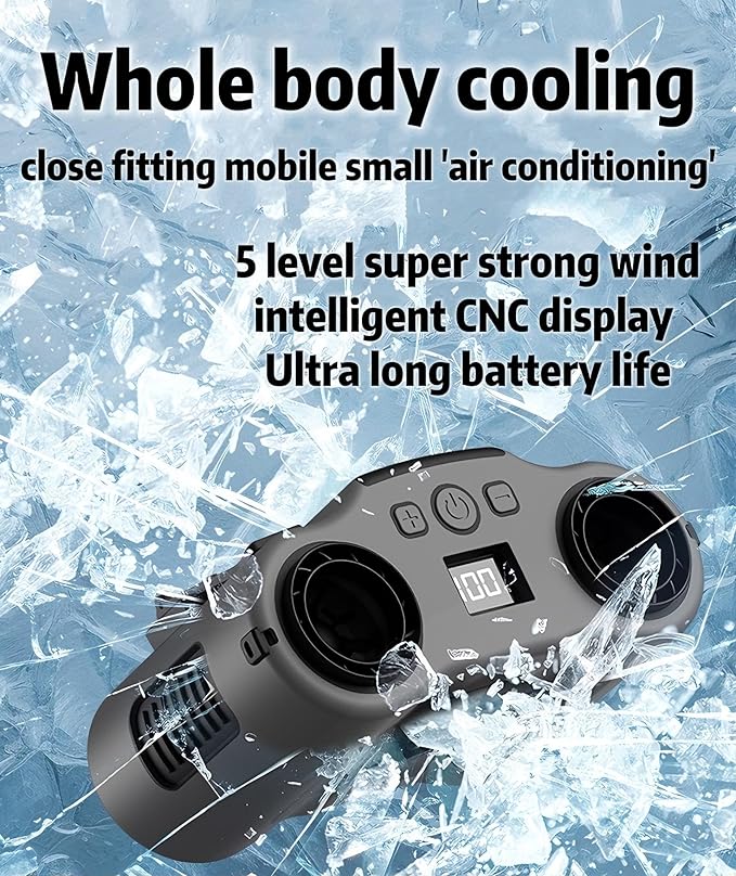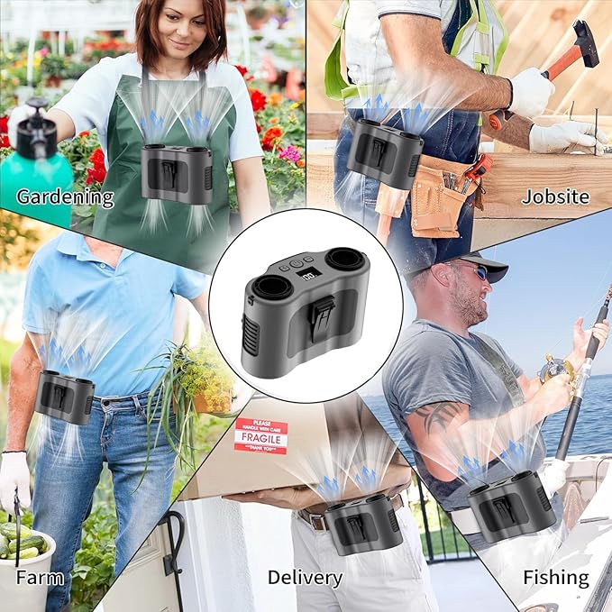 - ●High-speed refrigeration, full body refrigeration: The high-speed motor combined with compression refrigeration technology reduces the body temperature by 60.8°F, so that you can feel cool even in the hot summer, whether it is a hot job site or a steaming kitchen, our portable waist mounted air conditioning fan is your perfect cooling companion.